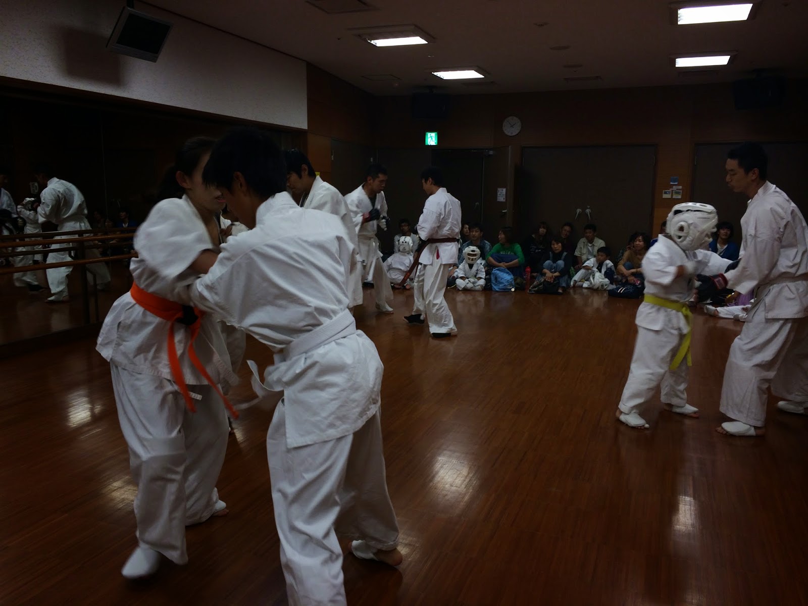 10月13日は本来八尾市総合体育館で合同稽古を行うはずでしたが台風19号の影響をうけ、稽古時間や稽古場所が急遽変更になる事態。稽古場に到着した際には風も強くなり大阪府には暴風、大雨、洪水警報がでており、さらにエリアメールが鳴るなどこの日に稽古を続行したのは間違いだったかなとか誰も来ないんじゃないかな等、色んな事が私の頭の中で廻っておりました。しかし稽古時間30分前になると第一陣M蔵が現れ1人でも参加してくれたと不安でいっぱいだった胸をなでおろした後、続々と稽古に参加する道場生が現れました。こんな暴風雨の中、急遽稽古に参加してくれたのがうれしくなりました。稽古内容はみっちり組手稽古を行いました。みんなかなり頑張りました。組手だけの稽古ですのでみんなの良い点、悪い点がよく見られところどころ修正し充実した有意義な稽古ができました。また今後も定例的に合同稽古をやっていきたいと思います。
